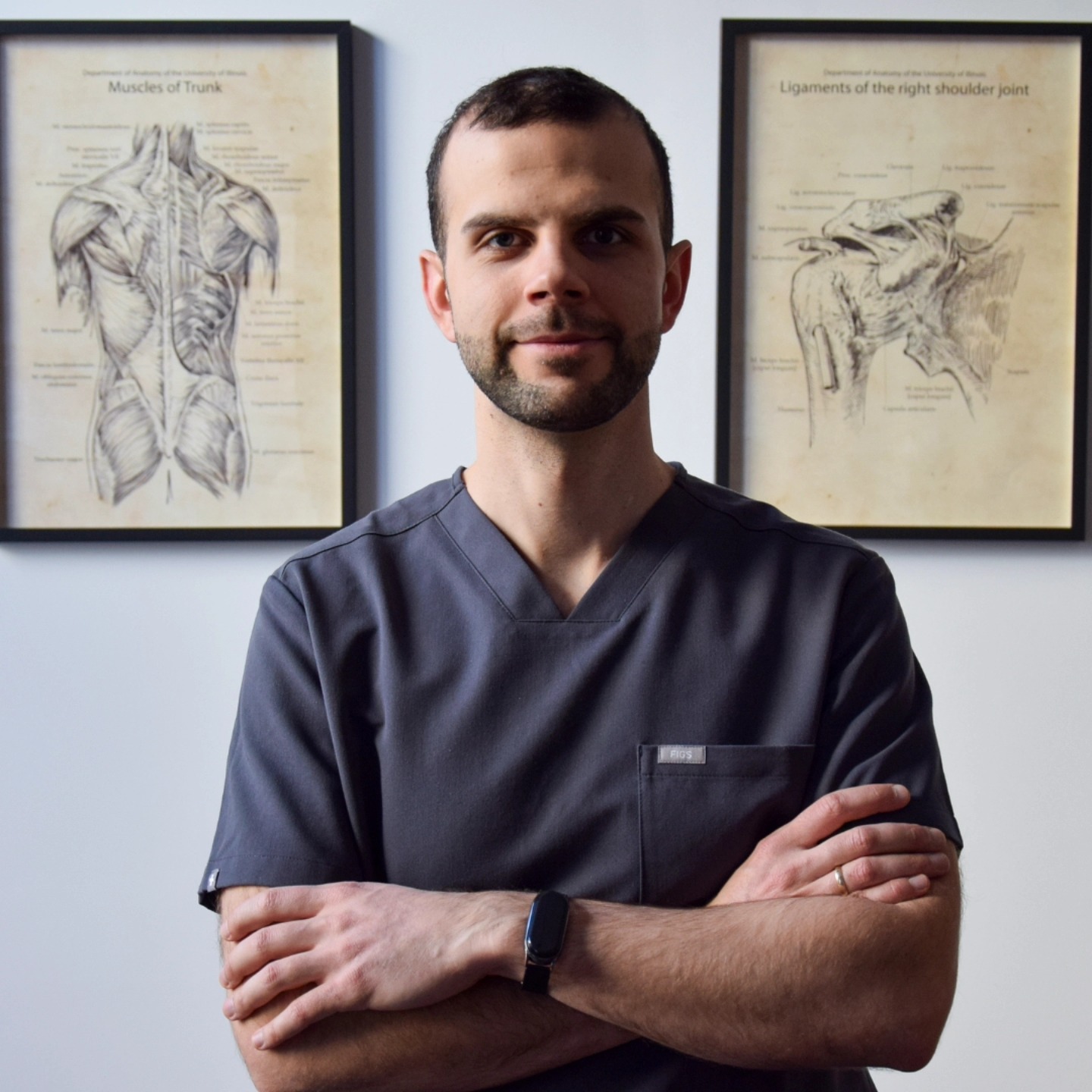 Twój ból ma konkretną przyczynę — moim zadaniem jest ją znaleźć i skutecznie wyeliminować. Specjalizuję się w fizjoterapii ortopedycznej: leczeniu kręgosłupa oraz stawów obwodowych. Łączę terapię manualną, pracę z tkankami miękkimi i trening medyczny, a tam gdzie potrzeba — diagnostykę wspieram USG dla precyzji i lepszych efektów.